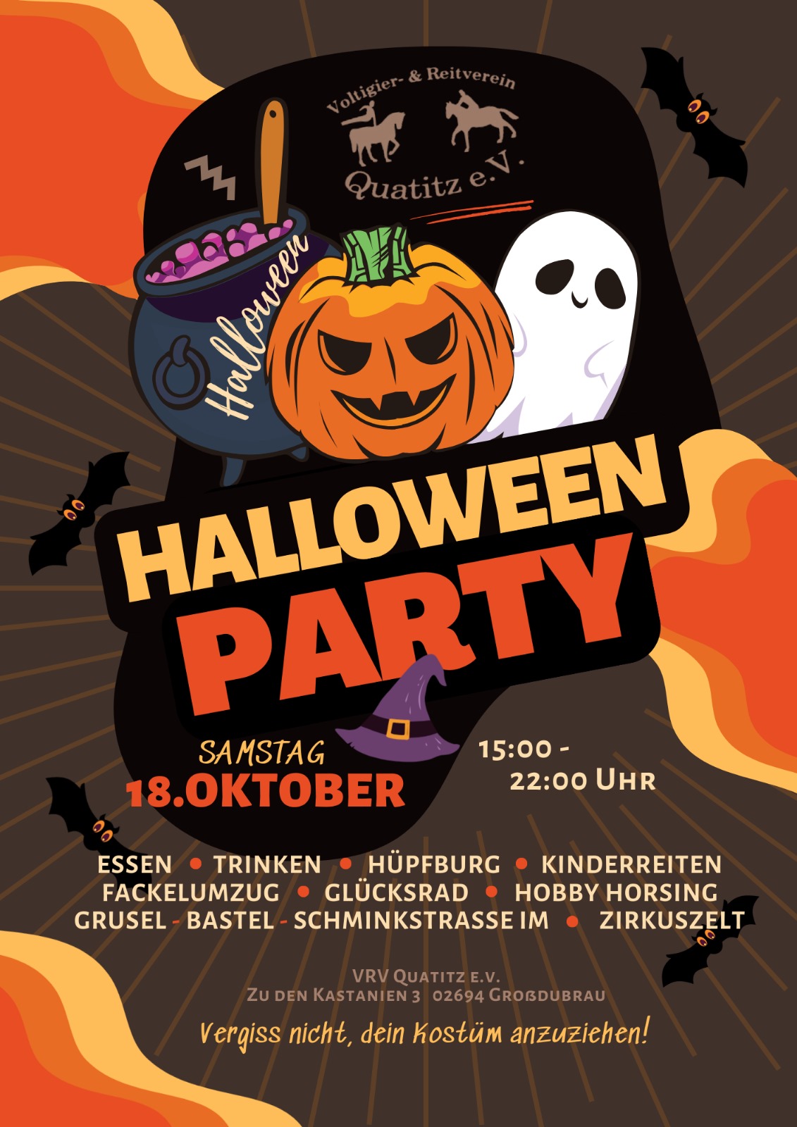 Ob jung oder alt – hier ist für jeden etwas dabei! Verkleidungen sind ausdrücklich erwünscht. Wir freuen uns auf euren Besuch und eine unvergessliche Halloween-Feier!